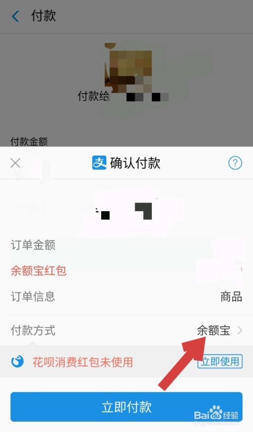 这里小编配一张付出时的图片,大师可以看到“付条目体例”后边跟的是“余额宝”,就是在上边设置的扣条目挨次中的第一个,还有“余额宝红包”也抵扣了。