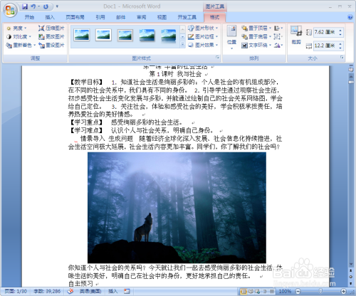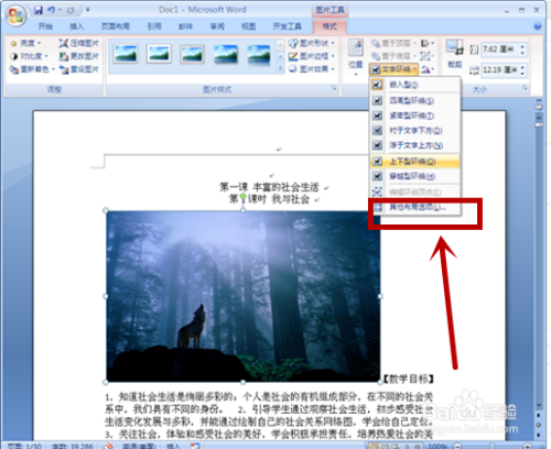 选中图片后,在菜单栏找到“格局”单击