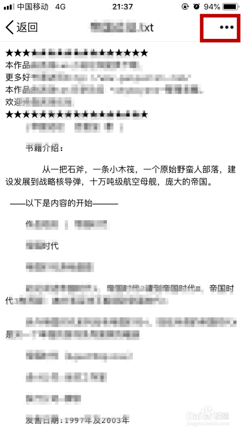 下载完当作后在qq中打开小说,点击右上角的三个点。