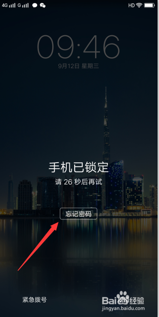 接下来就可以将手机锁定30秒,锁屏界面有个健忘密码的按钮,点击它。
