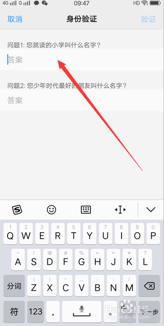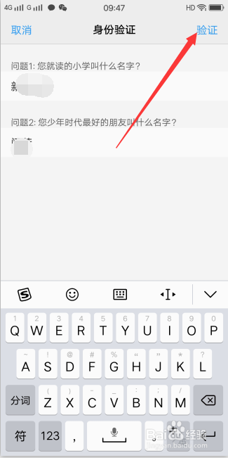 需要填入两个问题的谜底才可验证,精确输入后,点击右上角的验证按钮。
