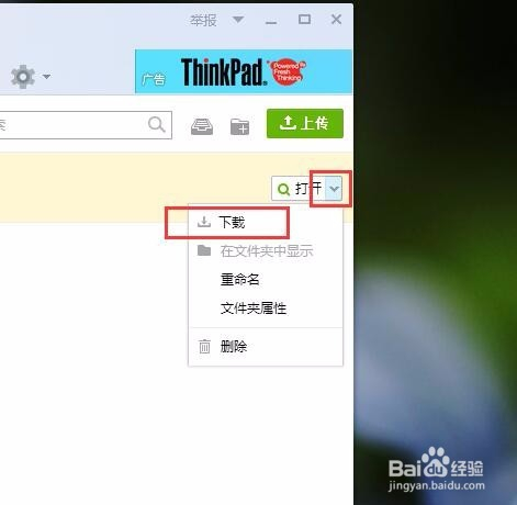 打开新建立好的文件夹之后,点击页面右上角的“上传”按钮,即可选择需要上传的文件到该文件夹中。