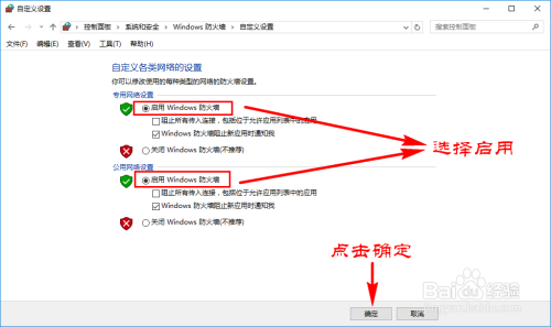 进入后,我们可以直接选择“利用保举设置”或者本身手动开启“启用Windows防火墙”,开启后再点击下面的确定按钮,确定后防火墙就被启用了。
