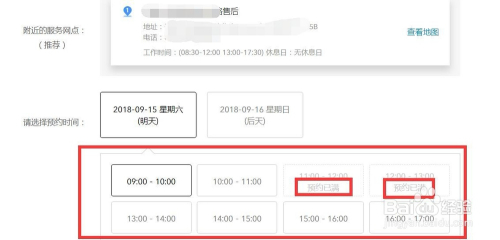 拔取好后,系统会主动帮你遴选一个比来的办事网点,当然你还可以下拉菜单,下面还有其他网点的联系体例。然后我们点击当即预约。