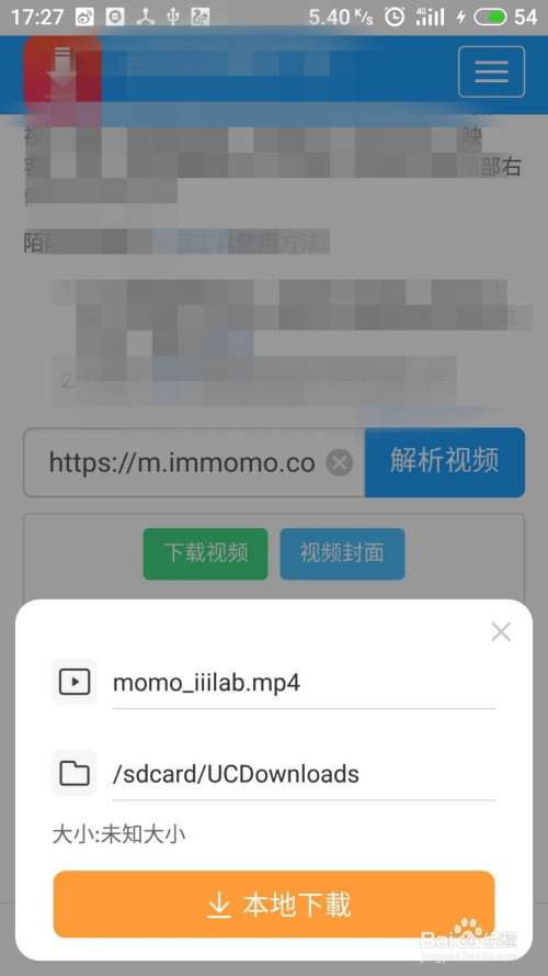 在浏览器中打开网页--陌陌视频解析下载,输入复制的链接。