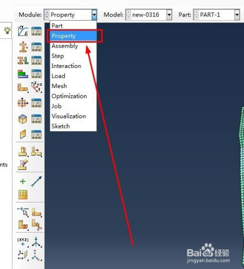 点击界面处的下拉菜单按钮,并选择【property】模块,在这个模块中可以设置材料的参数