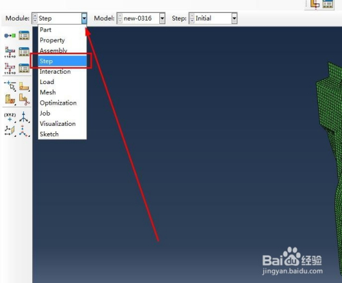 点击界面下拉菜单进入【step】模块,可以设置响应的载荷步