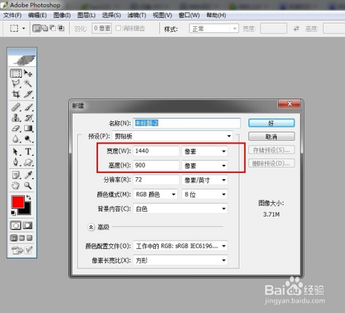 打开图像建造软件,新建一图片文件,大小尺寸会主动匹配我们电脑屏幕的分辩率。