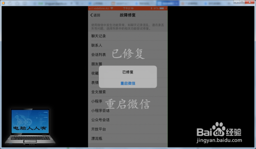 起头修复→已修复→重启微信。
