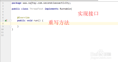 点击OK后,即可看到Andorid Studio软件为我们建立了一个空白的类,若是要实现建立线程的功能,需要让这个类担当Thread类或者实现Runnable接口