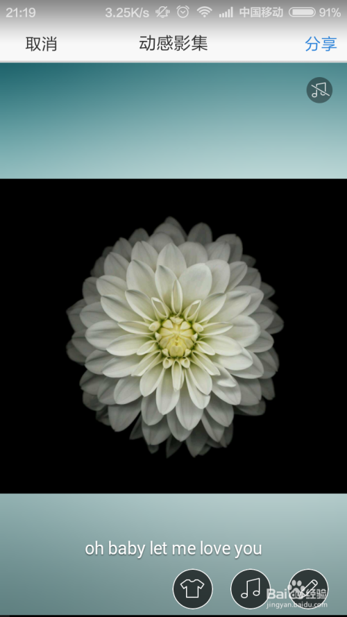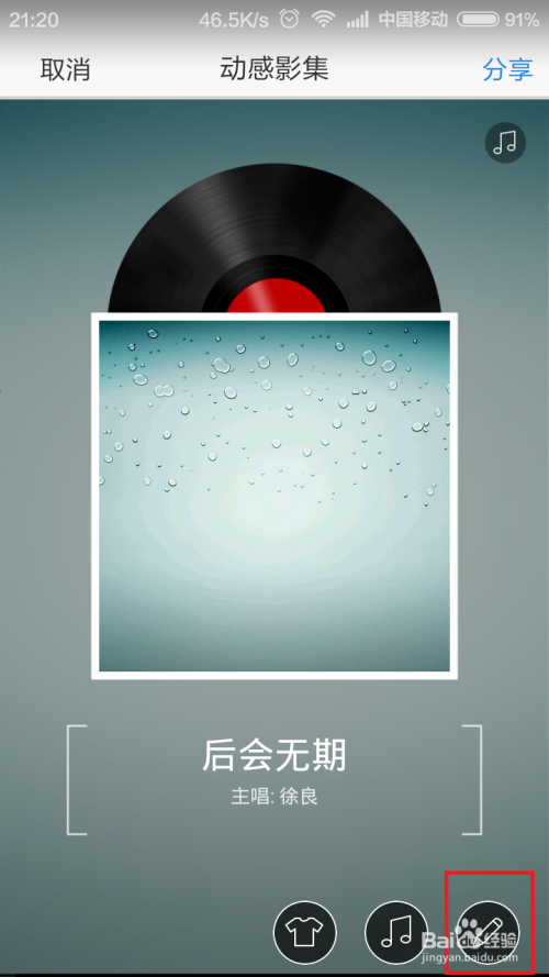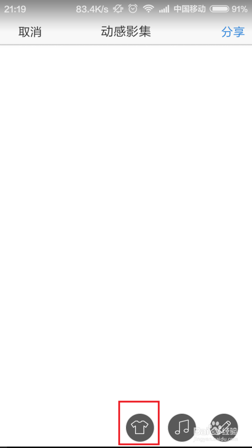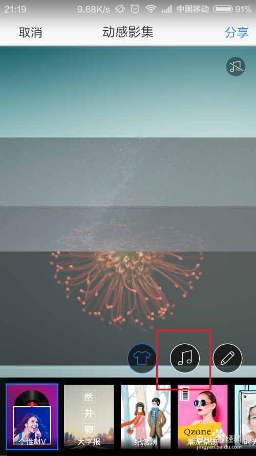 接下来,我们来完当作该动感影集中的第二阶段使命,在该使命阶段中,我们需要点击“音乐”图标,然后为该动感影集添加一段美妙的音乐。