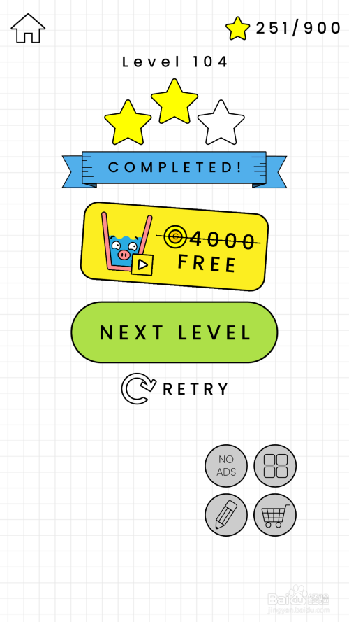 二星通关方式:同样的,我们画一个倒着的黑色的√,√的最后一笔就不消往返着画啦,如许重量就轻了点,有一些概率失落不到红色木板上。需要多尝尝,可是能二星通关该关卡。如图所示。