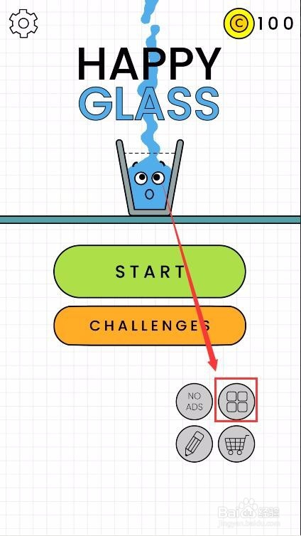 首先打开我们手机上的Happy Glass游戏,然后在本家儿界面点击有四个正方形的按钮。如图所示。