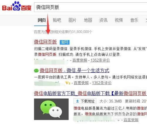 微信网页版和手机微信欠亨,我们需要打开微信网页版的网页才能登岸微信账号,我们可以经由过程百度搜刮微信网页版打开微信网页版的登岸页面。