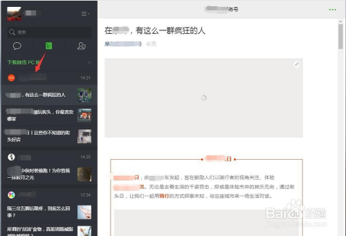 在这个公家号列表中,微信公家号是以左侧公家号和文字题目的形式摆列的,直接在右侧显示文章内容,和手机上看的结果是一样的。