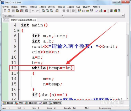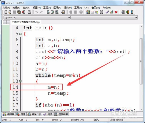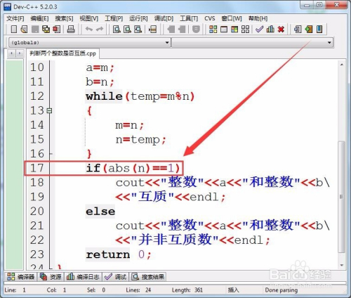 用if语句判定,两个整数的最年夜公约数的绝对值是否为1。