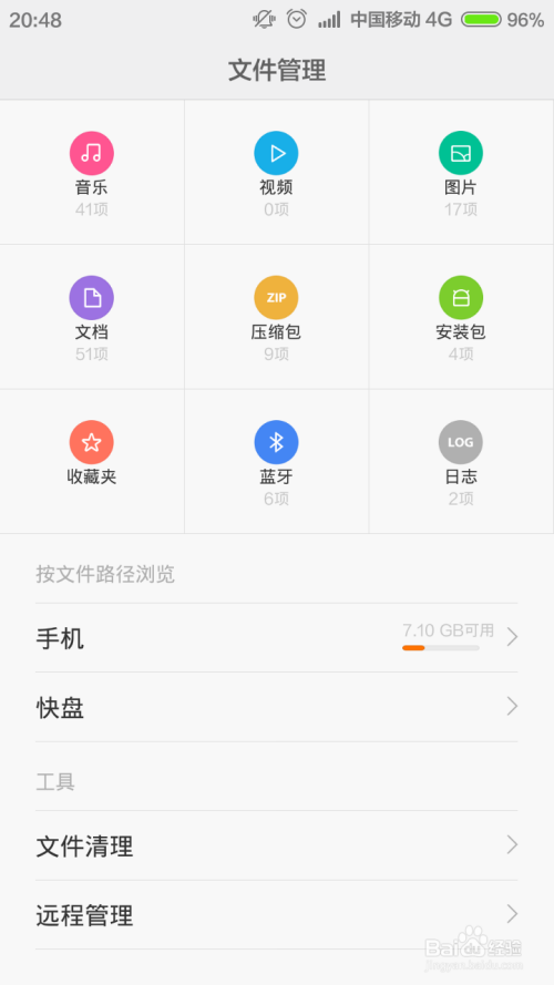首先,请大师打开装载有MIUI6系统的红米Note手机,然后点击进入文件办理应用。