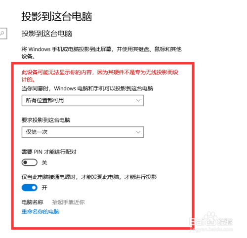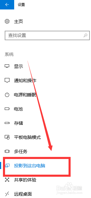 打开电脑,菜单键进入设置界面,进入显示设置,找到投影到这台电脑,选择所有位置都可用,按确定并记住电脑的名字。