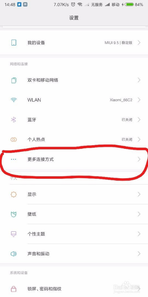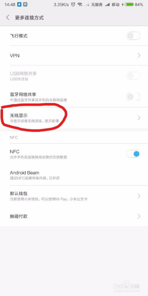 打开安卓手机,进入设置界面,点击更多毗连体例,选择无线显示,打开无线显示,在列表的无限显示设备名单选摘要显示的电脑名字。