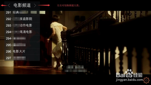 点击屏幕今后,在左上角弹出节目切换功能按钮,摆布可切换频道年夜类。