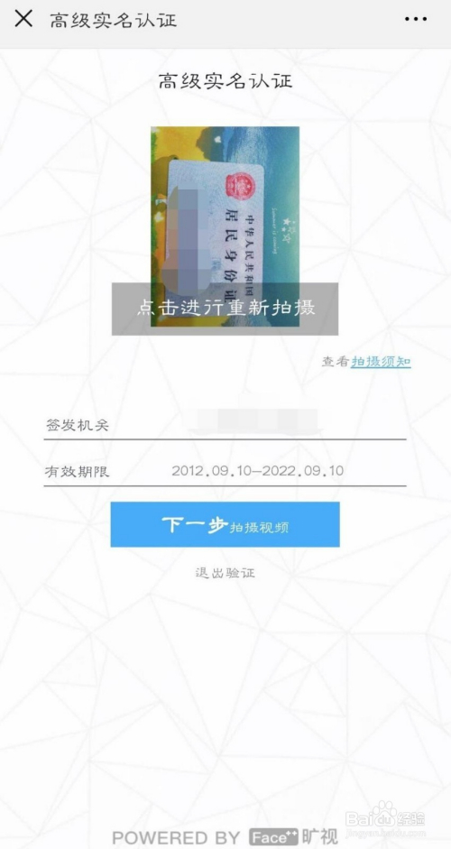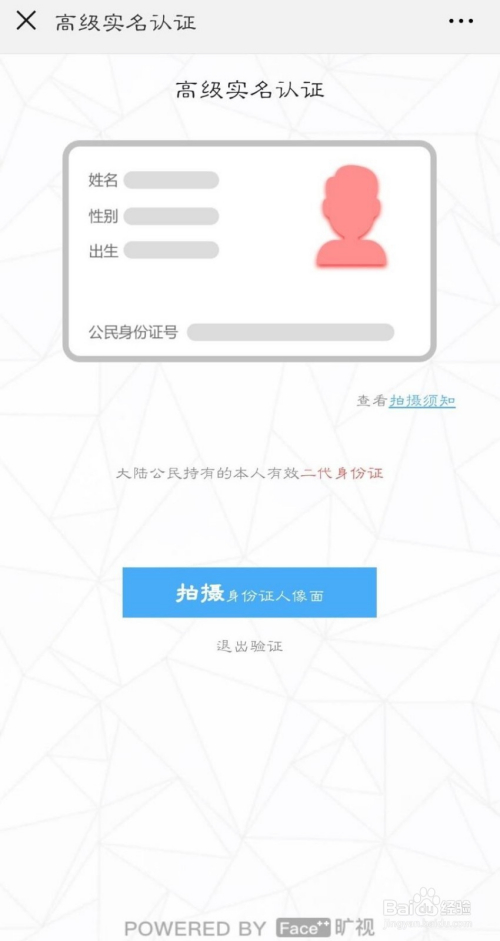 点击“起头验证”——点击“拍摄身份证人像面照”