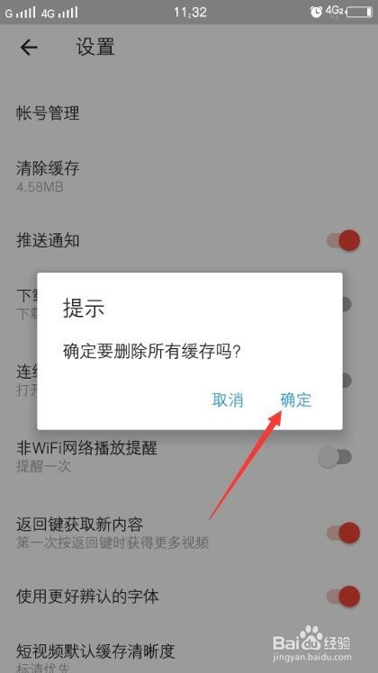 点击断根缓存弹出窗口,阅读提醒赞成点击确定。