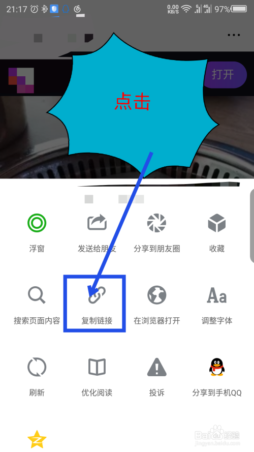 底部会弹出操作选项窗口,点击复制链接。如图所示