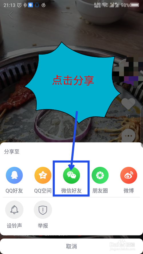 在弹出的窗口中,可以选择分享到QQ老友或者微信老友。如图所示