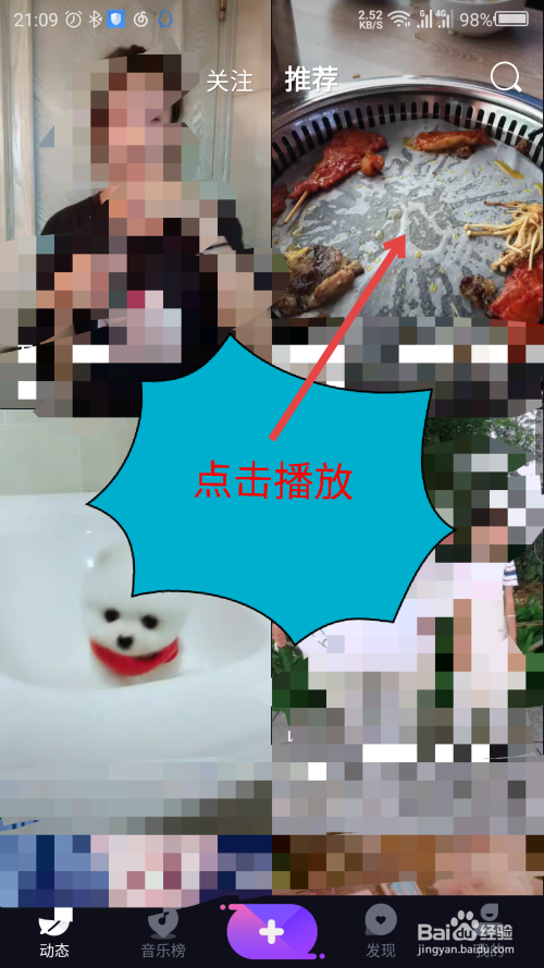 在酷音的动态页面,点击一个想下载的视频播放。如图所示