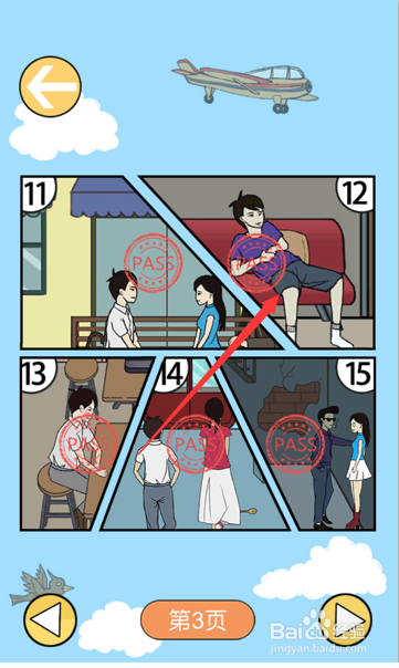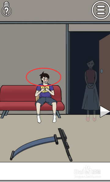 第12关攻略,进入游戏后,男本家儿角在红色得沙发上斜躺着,有点像葛优躺,背后还有一个枕头,关头点就在这个枕头里。