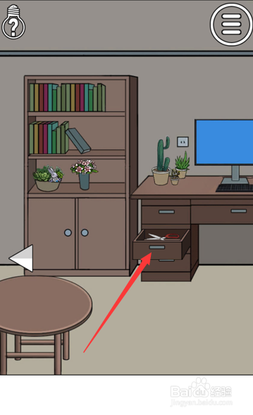 打开电脑桌的第二个抽屉,里面有一把铰剪,我们把铰剪放入到物品栏。