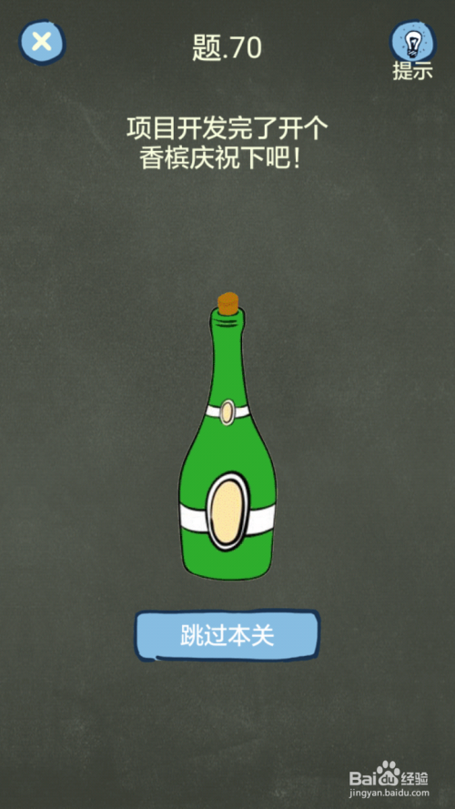 第70关手按住瓶口,然后摇摆手机到过关为止。