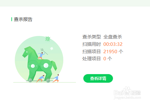 若是有病毒,杀毒软件会主动将其清理,并在最终返回处置成果。