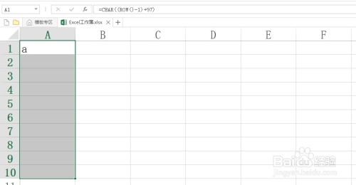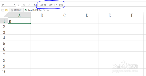注:若想输入年夜写字母A,将上式公式中的97改当作65;前次中的数字1对应输入行号,若从第二行起头输入,将数字1改当作2.