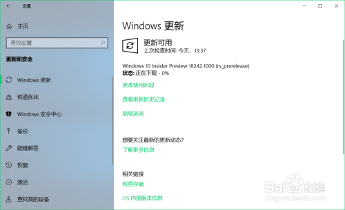 下面介绍Windows 10从17758(慢)进级到18242版系统的过程。
