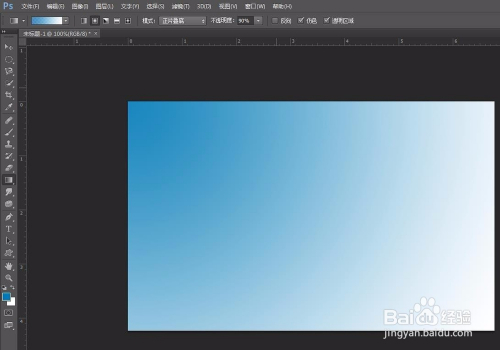 第四步:按住鼠标左键沿着画布的对角线拖动,形当作蓝色渐变布景。