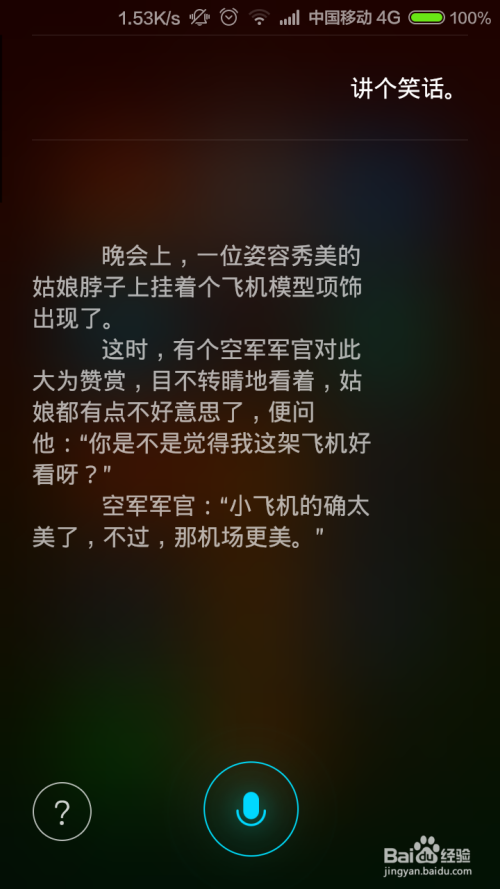 小米语音助手是MIUI系统中内置的语音识别软件,经由过程语音助手,我们可以便利的打开手机内应用,拨打德律风,查询信息,还可以聊天,讲笑话,具体该怎么利用呢?接待大师速来围不雅我的经验啦。