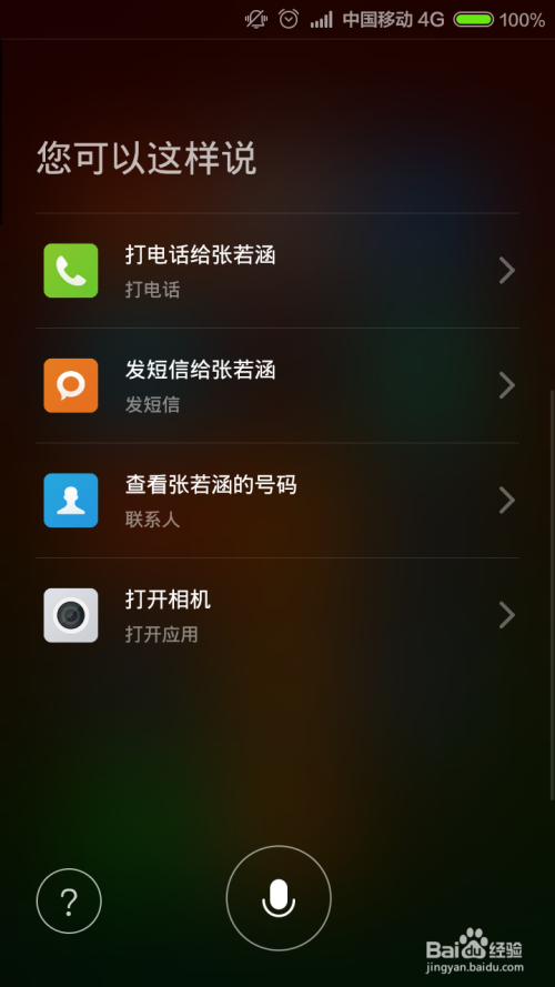 若是你想打德律风给联系人,只需要说出“打德律风给XXX”,XXX为联系人中的姓名,同样的事理,也可以利用发短信,打开应用的号令。