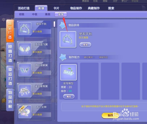 点开建造工坊后,我们点成衣,高级。就看到我们适才获得的坐骑模子阐扬了益处,就可以操纵它建造一些本身想要的坐骑啦。