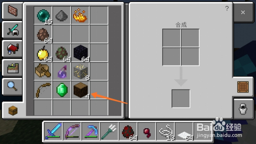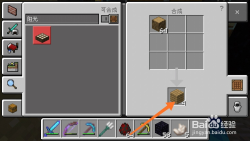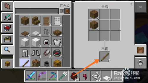 获得金块之后我们点击工作台,首先将橡木块合当作橡木板,然后利用橡木板合当作木棍。如下图所示。