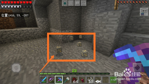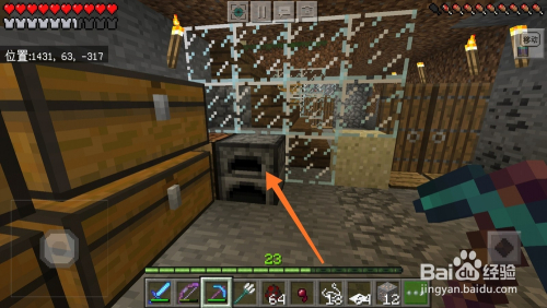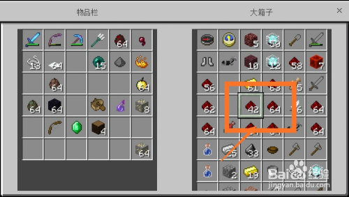 原料凑齐之后,我们来到本身的房间,从箱子里拿出红石块,红石块一般分布在16格以下的地表中,可以经由过程矿洞和标的目的下挖掘获得,如下图所示。