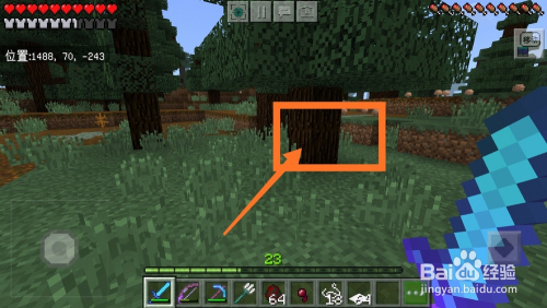 获得金矿石之后我们来到野外。挖掘橡木块,橡木块也遍及存在于天然界和野外中,如下图所示,小编已经砍伐了一些,并获得了足够多的橡木块。