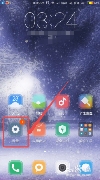 然后点击手机桌面上面的 设置 图标。