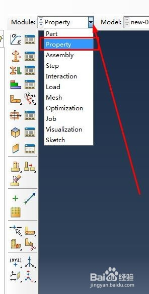 点击界面处的下拉菜单按钮,并选择【property】模块,在这个模块中可以设置材料的参数