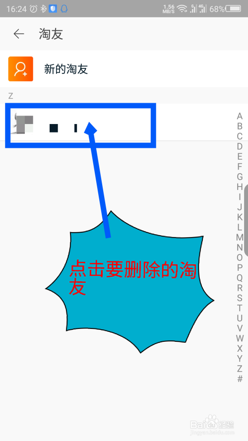 打开淘友界面后,选摘要删除的淘友点击一下。如图所示