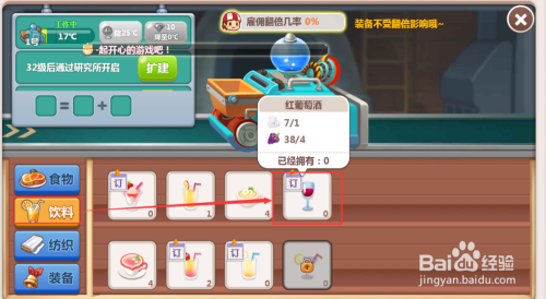 可以看到想出产出红葡萄酒,必需要有白糖和葡萄作为原材料,此刻仓库里有这两种物质,所以可以加工出产出红葡萄酒;