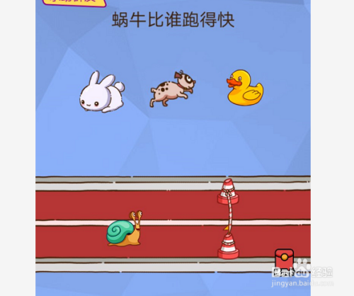 挑战关卡3,蜗牛比谁跑得更快,其实点击终点线就对了,如图所示