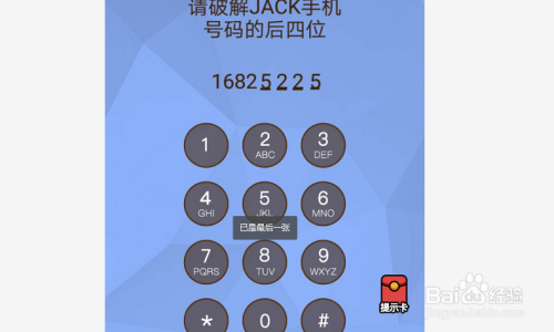 挑战关卡6,请破解JACK手机号码的后四位,那后面的四位数字就是5225,如图所示