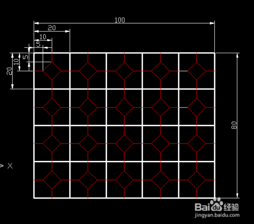 在最左上角的位置,绘制如图所示的图形,并操纵镜像号令填充整个左上角的风雅格