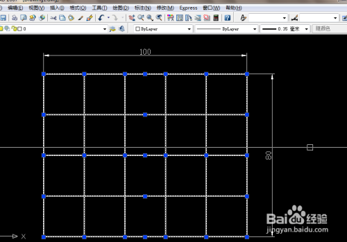 选择矩形阵列,并输入“行”的数值与“列”的数值,以及行的偏移距离与列的偏移距离,最后获得图形如下。标注相关的尺寸,获得最终的图形。